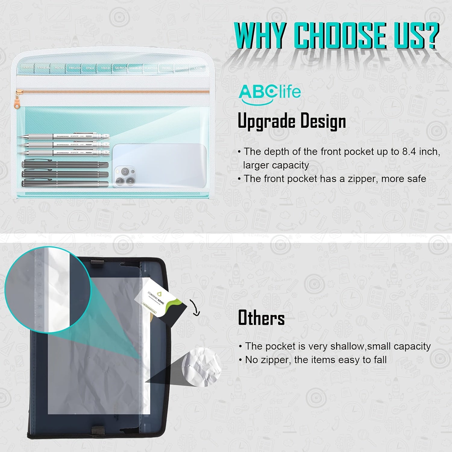 13-Pocket Expanding File Folder w/ Front Pencil Pouch, Secure Zipper, and Colorful Labels - 3 Colors