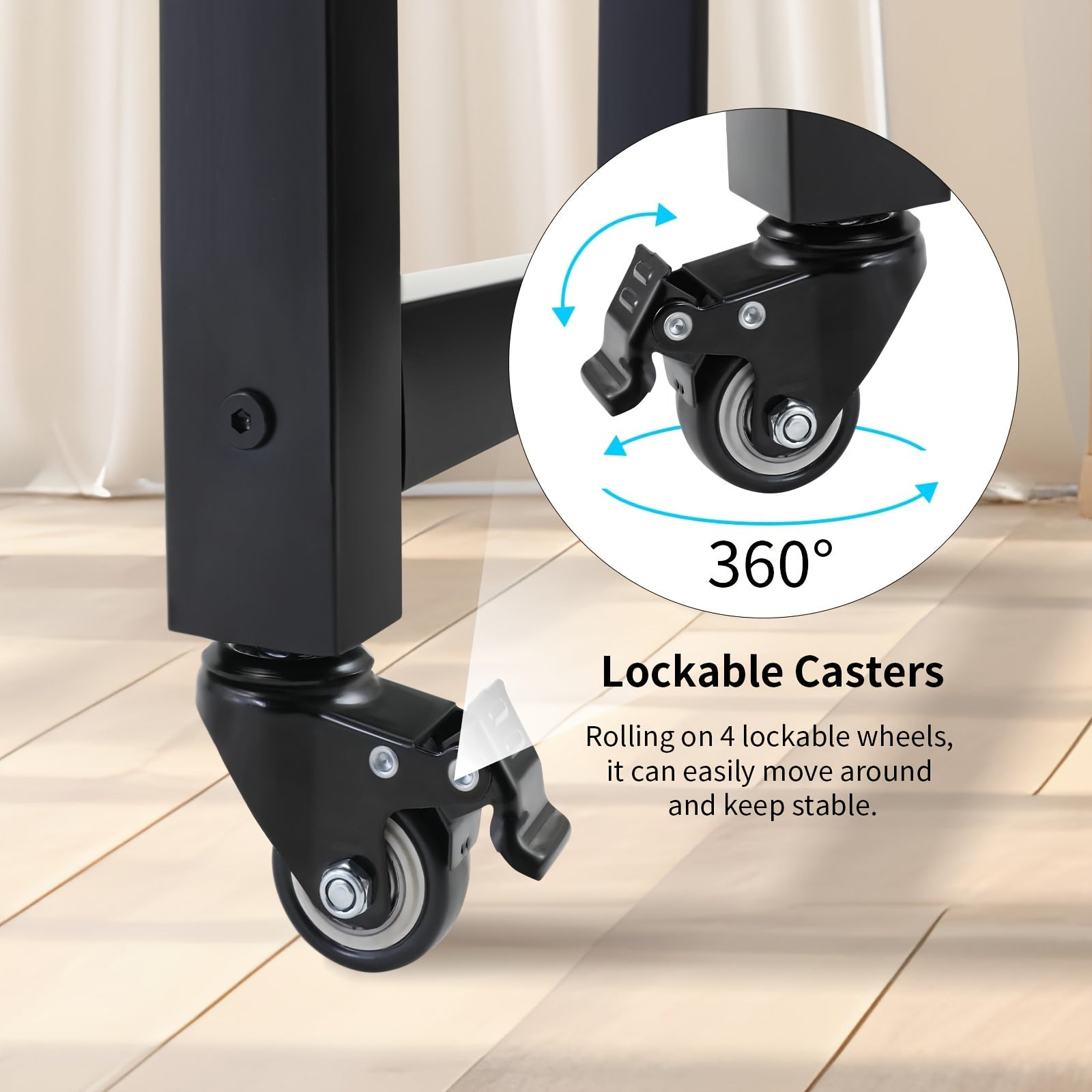 The overbed table features a generously sized surface measuring 70.8" in length and 16" in width, providing ample space for various tasks. It is constructed with a strong steel frame and reinforced particleboard, ensuring a durable and stable structure that is both flexible and sturdy.