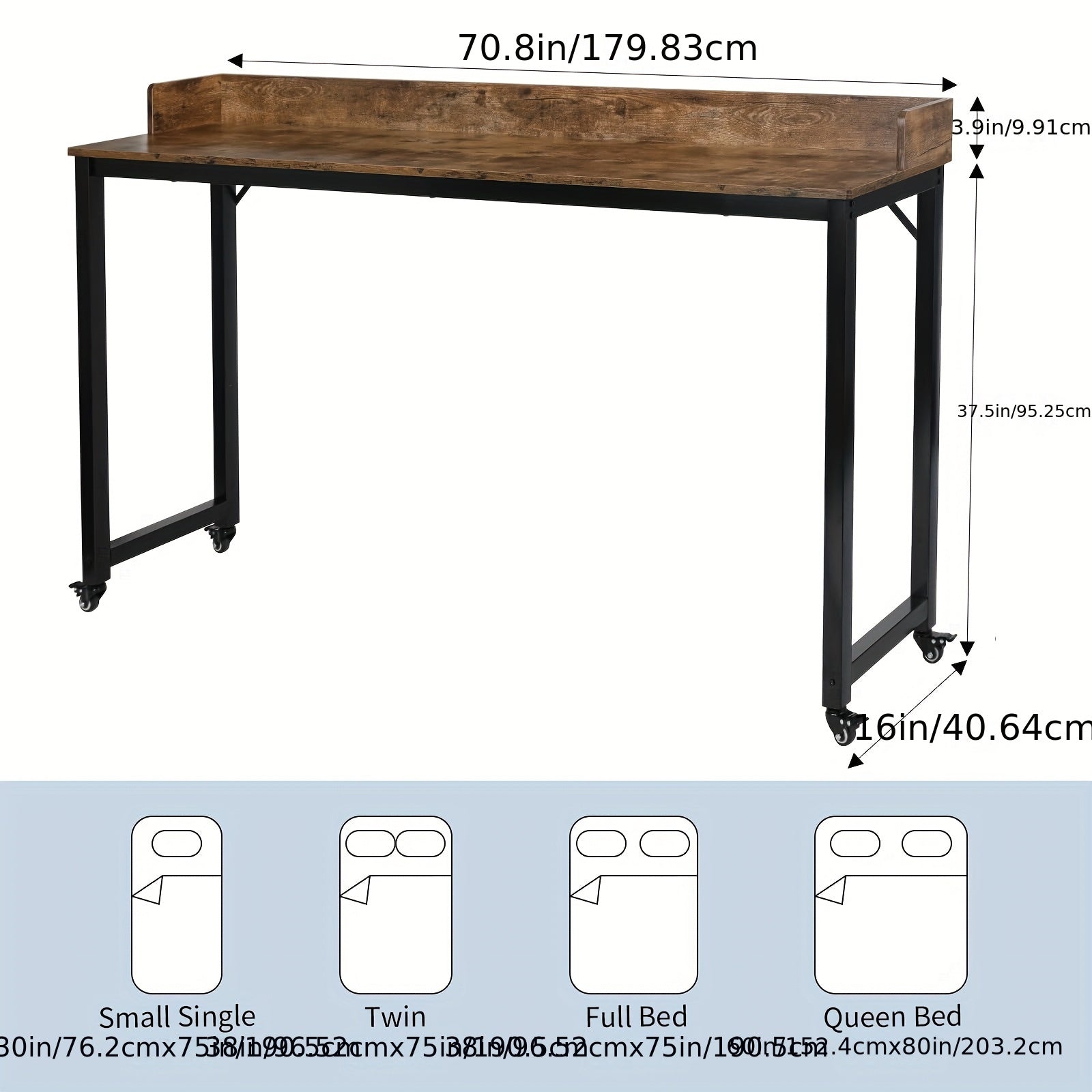 This overbed table offers multiple uses beyond serving as a bedside table; it can function as a bar table, dining table, laptop cart, standing office desk, breakfast tray, or hospital bed table, adapting seamlessly to your needs and lifestyle. With a length of 70.8 inches, this bed desk is compatible with various bed sizes, including small single (30" x 75"), twin (38" x 75"), full (54" x 75"), and queen (60" x 80").