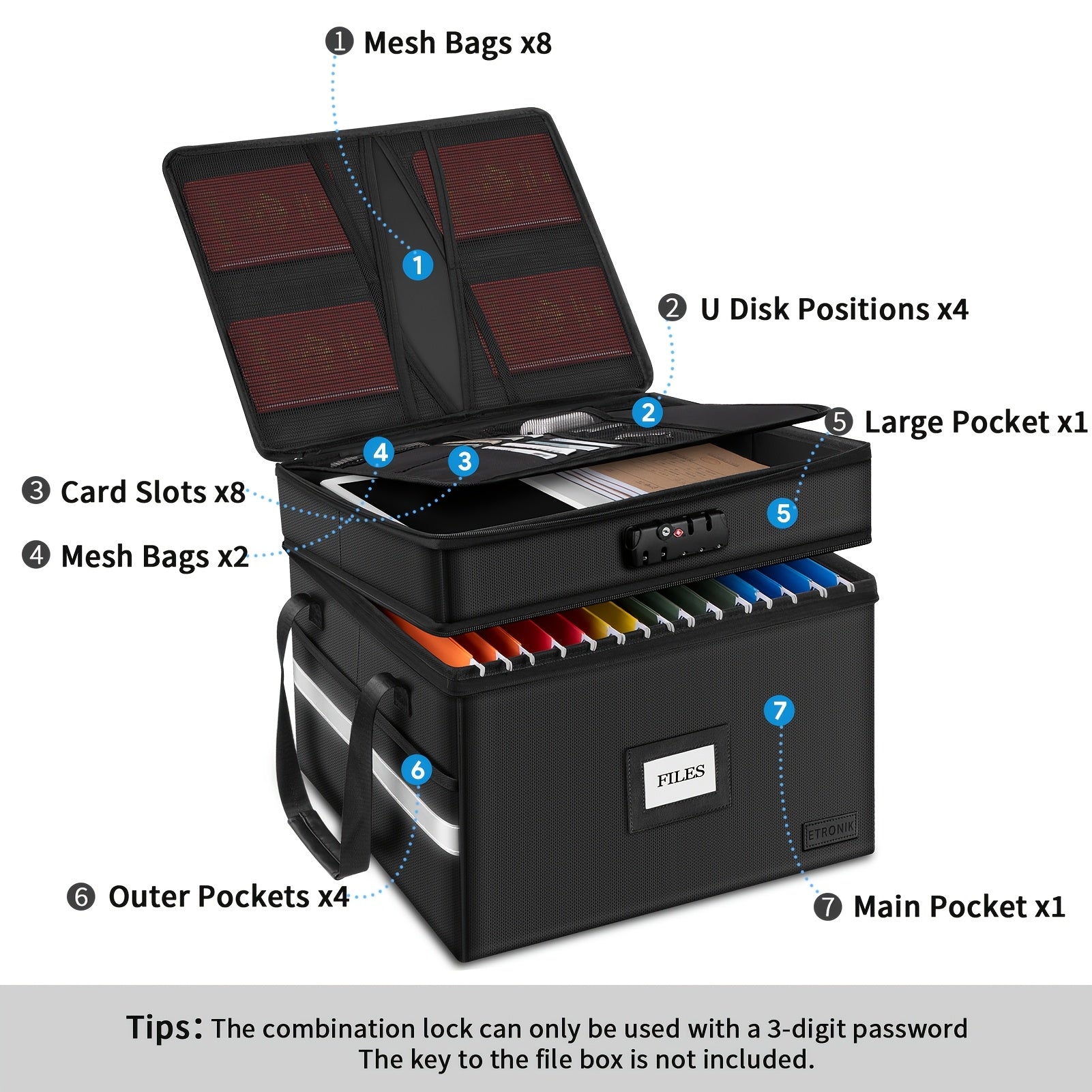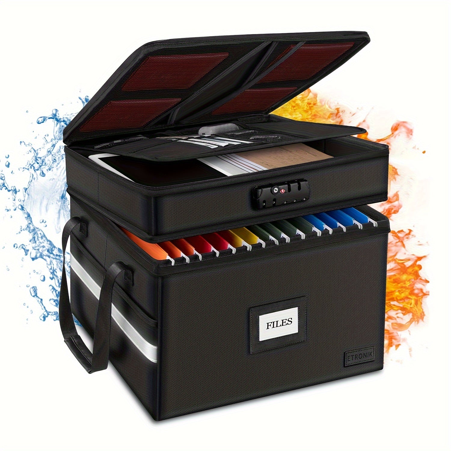 Large Fireproof File Box w/ Lock, 2 Layer File Organizer, & Portable Office Collapsible File Box