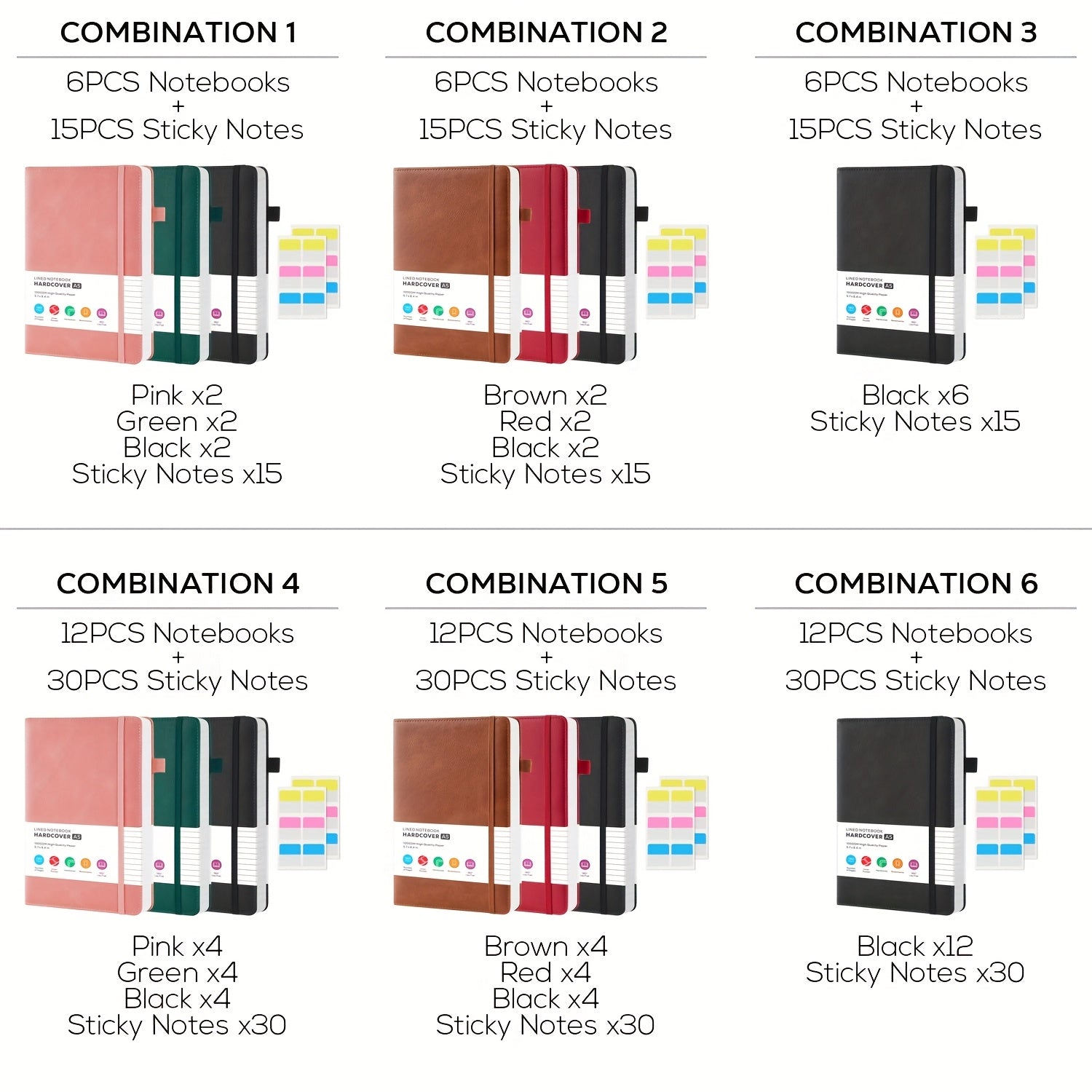 Lined College-Ruled Notebooks - A5 Size PU Leather Hardcover -- 6pks & 12pks Options