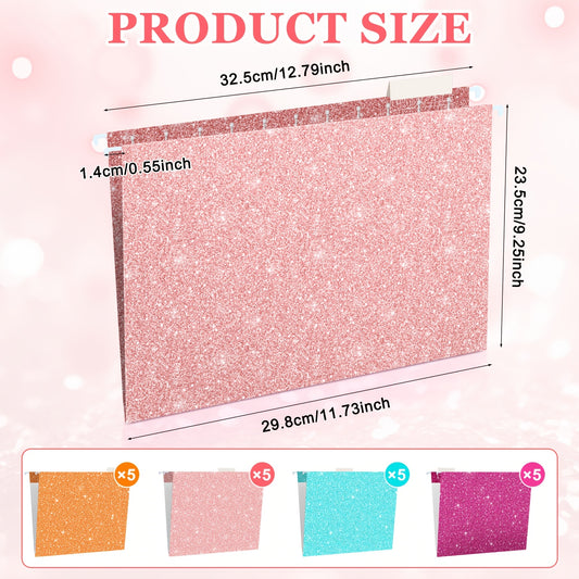 20pcs Glitter Hanging File Folders 12" x 9.25" with Adjustable Tabs - Multicolor