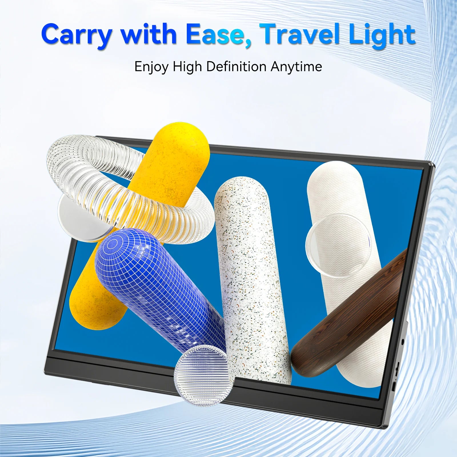 [ ULTRA-SLIM PORTABLE DISPLAY ]: This USB-C portable monitor features a 0.3-inch ultra-slim profile(1.7lb). It is easy to slide into your bag and allows you to carry it everywhere. It is ideal for a simple on-the-go dual-monitor setup or extending your phone screen for movies or games. No driver is needed, and it is equipped with 3.5mm audio inputs and two built-in stereo speakers to enhance the entertainment experience.